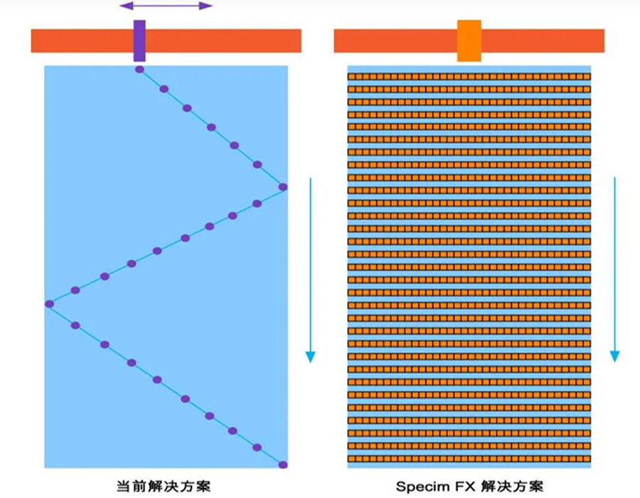 線掃描(推掃)高光譜相機(jī)可以克服這一限制,檢查整個(gè)膜或涂層。每次線捕捉中,可在整個(gè)膜的寬度產(chǎn)生高空間分辨率的光譜數(shù)據(jù)。