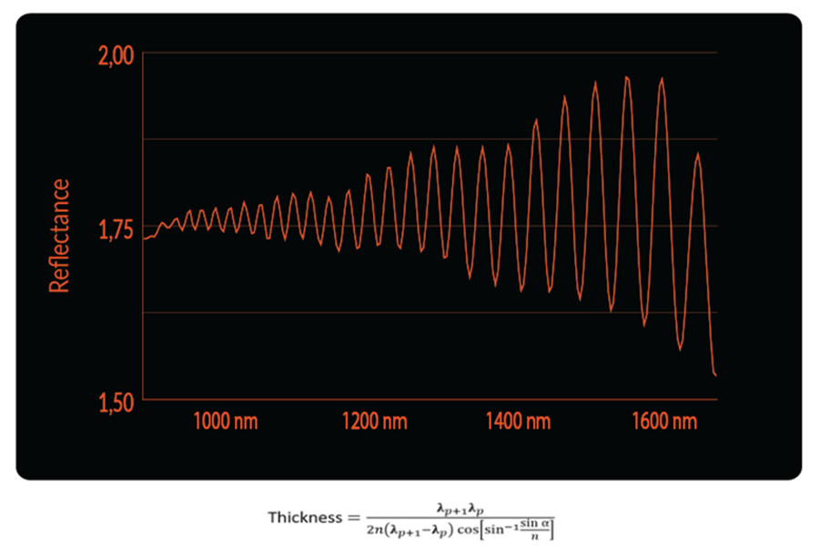 在鏡面反射中測量的光譜干涉圖案被轉(zhuǎn)換成厚度圖。