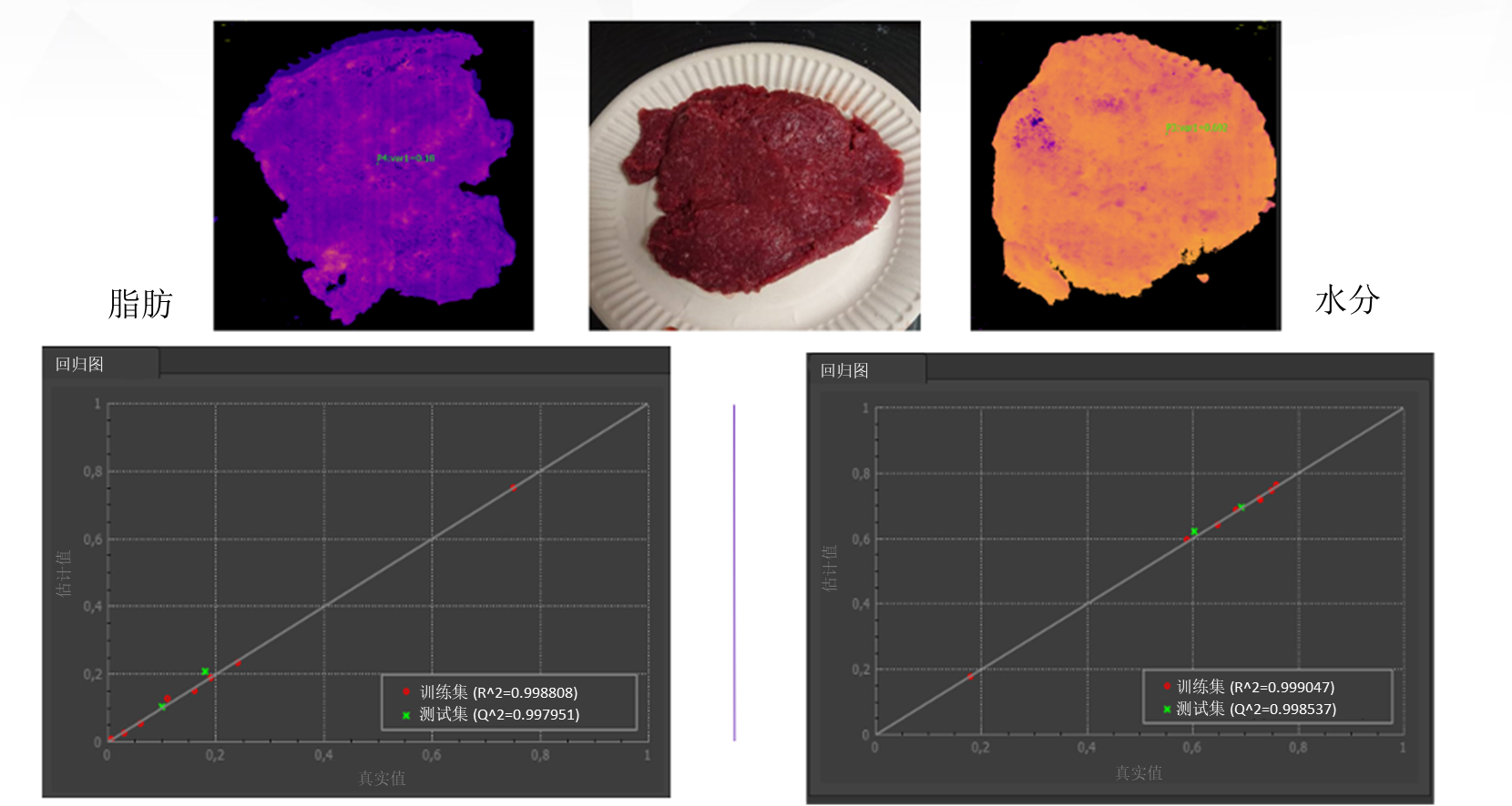 圖 9:事實(shí)證明,Specim FX17 相機(jī)及其 NIR 光譜范圍非常善于準(zhǔn)確測(cè)量肉末的水分和脂肪含量。