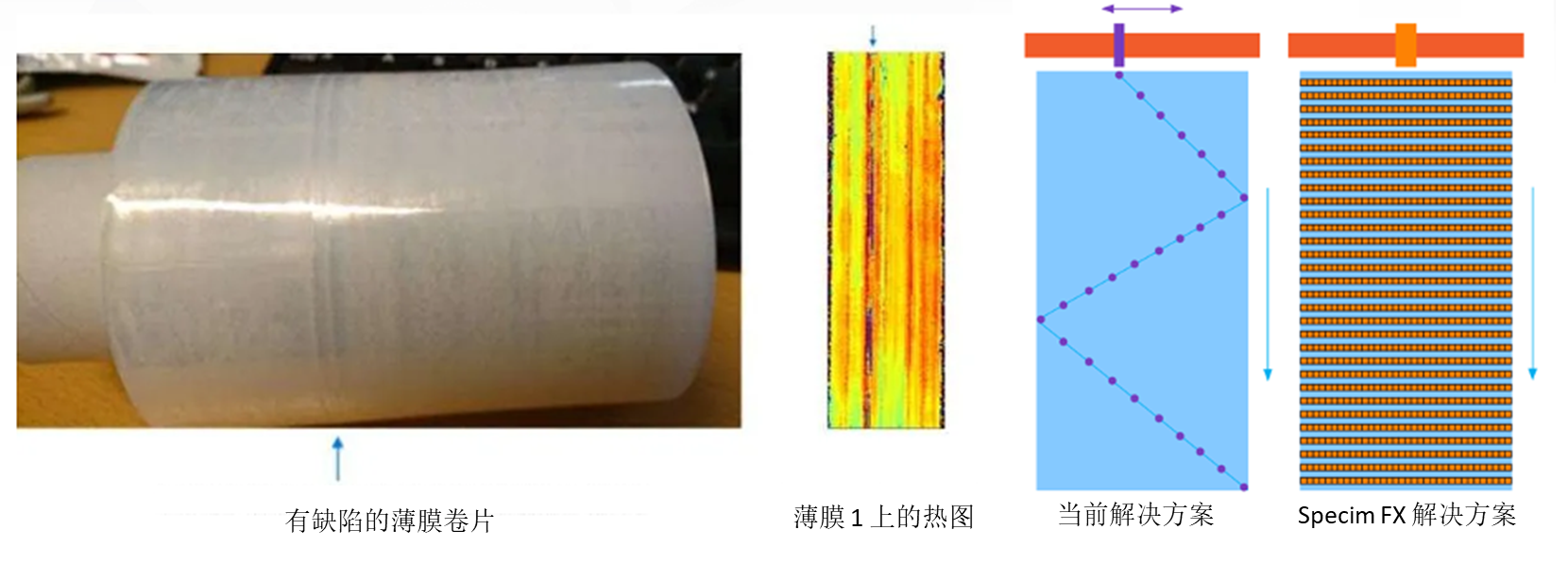 圖 13:NIR 高光譜相機(jī)(例如 Specim FX17)通過(guò)捕獲整個(gè)薄膜寬度上的高分辨率光譜數(shù)據(jù)來(lái)提供解決方案。