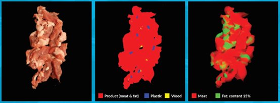 舉個例子,X 射線可以正確識別碎肉中的大骨頭,而高光譜相機則不能。但是,高光譜相機可以準(zhǔn)確量化脂肪和蛋白質(zhì)含量,而 X 射線系統(tǒng)無法提供任何數(shù)據(jù)。