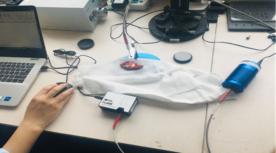 一家專(zhuān)注于研究射頻消融術(shù)監(jiān)測(cè)的醫(yī)療研究機(jī)構(gòu)使用了海洋光學(xué)光譜儀對(duì)心臟不同部位進(jìn)行了消融實(shí)驗(yàn)。在實(shí)驗(yàn)過(guò)程中,通過(guò)觀測(cè)分析心臟不同部位,不同燒蝕程度的反射光譜圖來(lái)表征不同的消融程度,從而達(dá)到有效監(jiān)測(cè)心臟消融術(shù)順利進(jìn)行的目的。