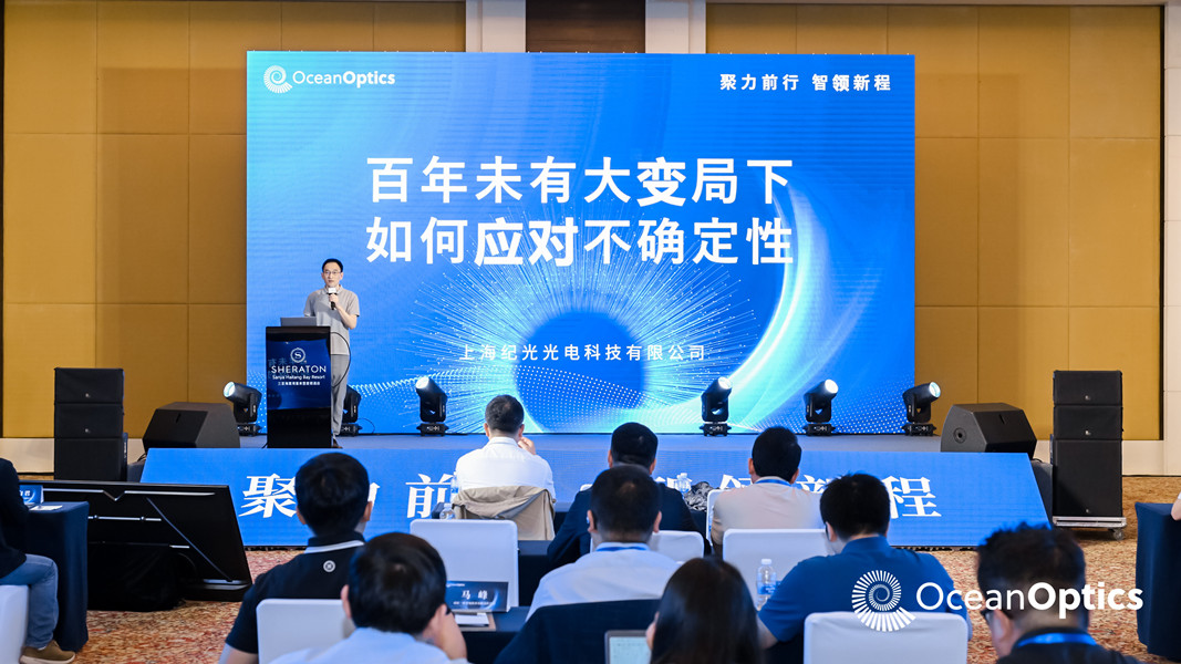 [三亞],[2025.4.16]—在近日舉行的2025年海洋光學(xué)代理商大會上,上海紀(jì)光光電科技有限公司應(yīng)邀并發(fā)表主題演講,圍繞“百年未有大變局下如何應(yīng)對不確定性”分享了公司的戰(zhàn)略思考與實(shí)踐路徑。面對當(dāng)前中美貿(mào)易摩擦加劇、不確定性增強(qiáng)的嚴(yán)峻形勢,明確提出以“深耕光譜行業(yè),聚焦光譜應(yīng)用”為核心發(fā)展方向,持續(xù)推進(jìn)“海洋+”戰(zhàn)略,即以海洋光學(xué)光譜儀為核心器件,開發(fā)多元化的應(yīng)用系統(tǒng)。贏得與會伙伴的廣泛關(guān)注!