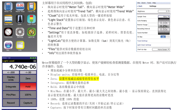 - 測(cè)量范圍:50皮安至1毫安電流,光強(qiáng)度測(cè)量跨越8個(gè)數(shù)量級(jí)