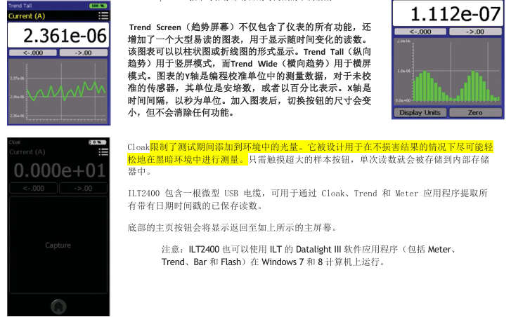 - ILT2400是市面上先進(jìn)的手持式光度計(jì)/光強(qiáng)計(jì)。ILT的Accuspan軟件在快速測(cè)量超過(guò)8個(gè)數(shù)量級(jí)的光強(qiáng)度時(shí),會(huì)自動(dòng)設(shè)置平均值。